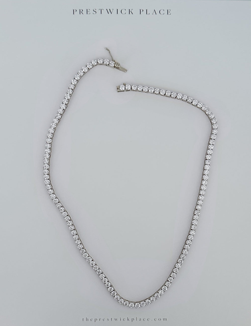 The Prestwick Place Lab-Diamond Tennis Necklace features an impressive easy-to-wear design with vividly white Round Cut Lab-Diamonds set into the entire length of the necklace.
