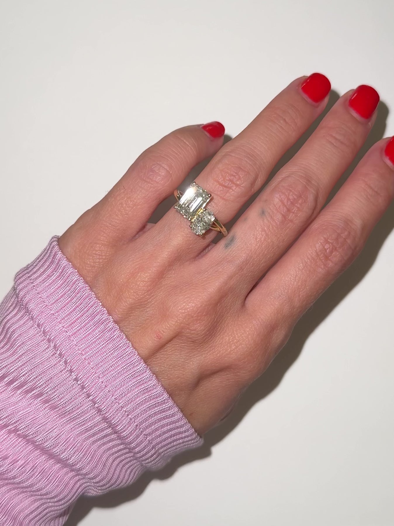 At Prestwick Place, proportions are everything. The 3.0ct Jesse Twist is a masterclass in balance - pairing a 2.3ct emerald cut diamond with a 0.7ct oval in perfect harmony. We don’t simply “make a ring”; we carefully consider the length, width, and depth of each diamond to ensure a flawless flow across the finger.
