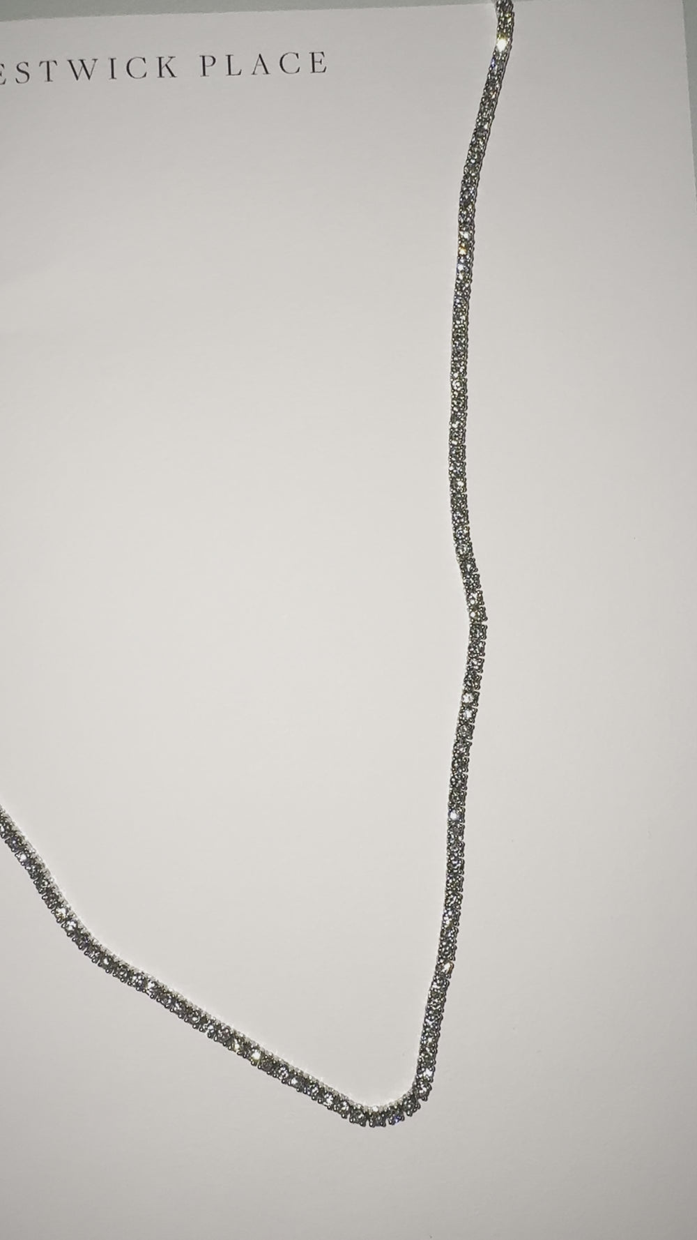 The Prestwick Place Lab-Diamond Tennis Necklace features an impressive easy-to-wear design with vividly white Round Cut Lab-Diamonds set into the entire length of the necklace.